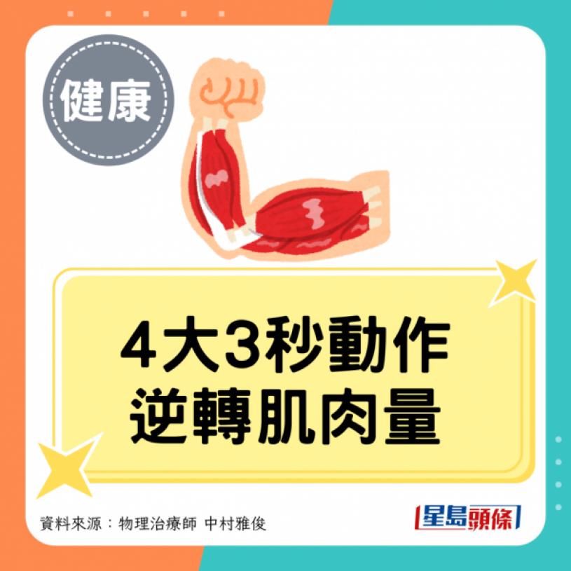 中村雅俊表示,肌肉的質量與力量表現密切相關,當肌肉量增加時,力量也會隨之增強。若肌肉功能出現問題,便無法發揮其應有的速度與效能。實際上,驅動身體活動的骨骼肌是由運動神經所控制,這些神經負責傳遞大腦發出的動作指令。長期缺乏運動會導致大腦、運動神經、肌肉這條傳導網絡出現斷聯。 而3秒肌肉動作則能透過輕度的動作練習,修復這條受損的傳導鏈,讓大腦的指令更順暢地傳達到既有的肌肉,從而提升肌力表現。