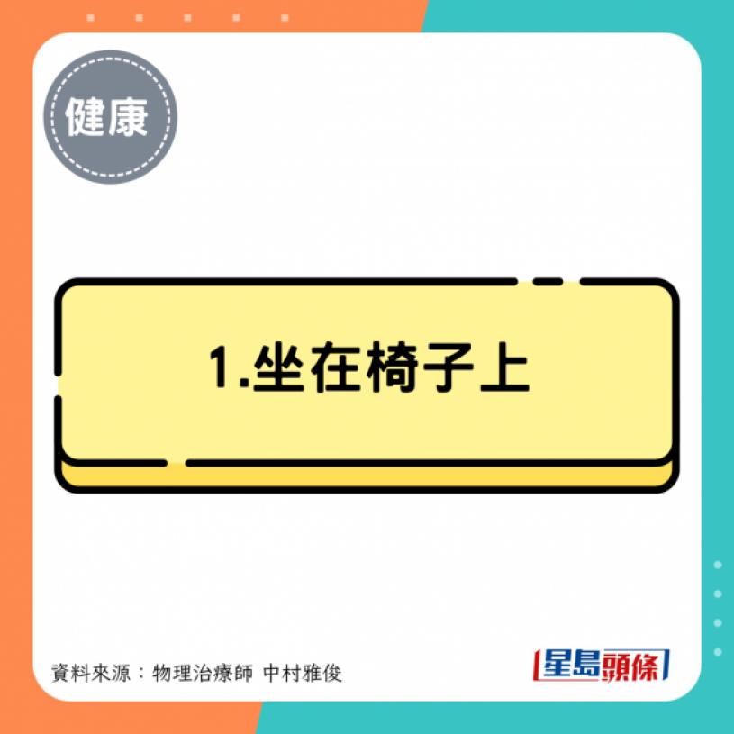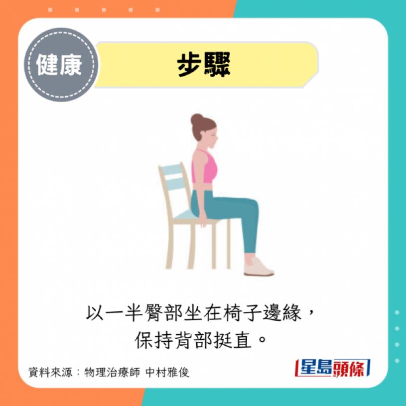 - 以一半臀部坐在椅子邊緣,保持背部挺直。