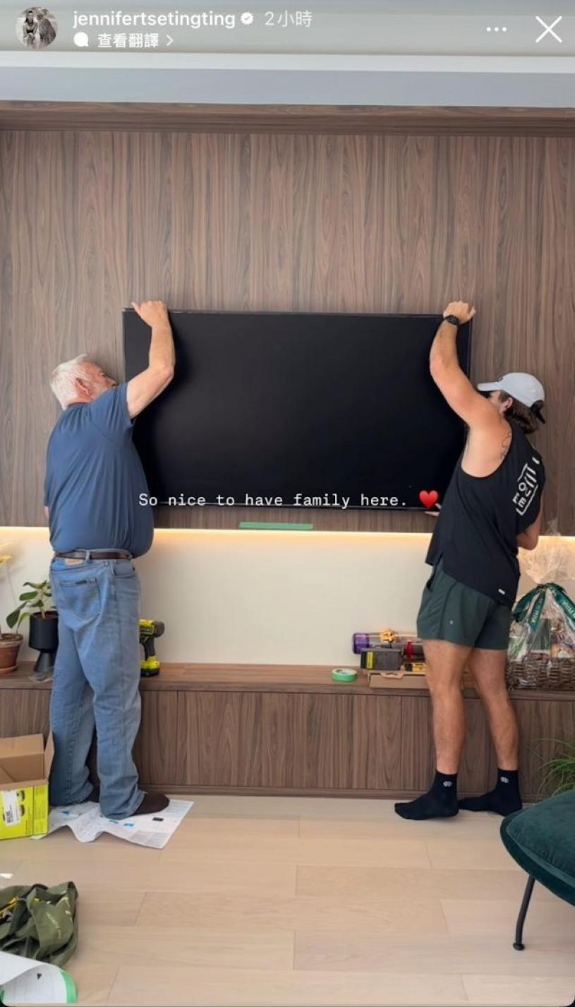 謝婷婷開心表示有家人在一起:「so nice to have family here」,又感謝做地產的朋友幫忙找到這麼好的寓所。