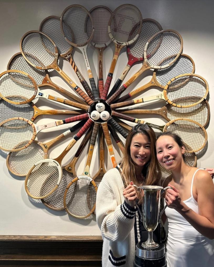 謝婷婷在懷孕24周時與拍檔贏得卑詩大師賽ITF700女子35歲雙打冠軍