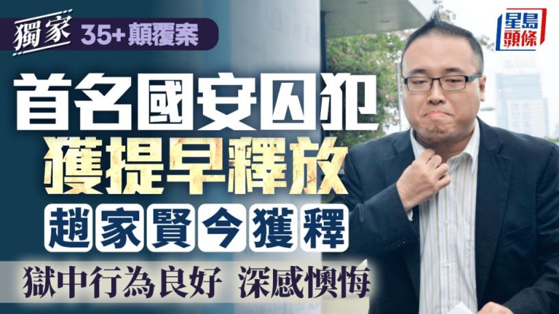 被裁定串谋颠覆国家政权罪成、判囚7年的赵家贤,《星岛头条》独家得悉,赵家贤今刑满出狱,据赵身边人士透露,赵家贤因在狱中行为良好、深感懊悔,扣除假期后、今日获䆁。据悉,赵原订2028年初才获释,现相信获惩教署按相关法例机制提前于今日释放,成为《维护国家安全条例》生效后,首名国安囚犯提早获释。