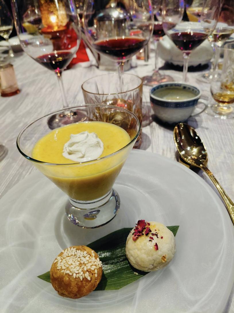 隨後登場的是多道式坐席晚宴,現任香港君悅酒店米芝蓮推薦「港灣壹號」主廚陳漢章,以及上述新生代主廚聯手獻藝,演繹點心的「經典」、「現在」與「未來」。