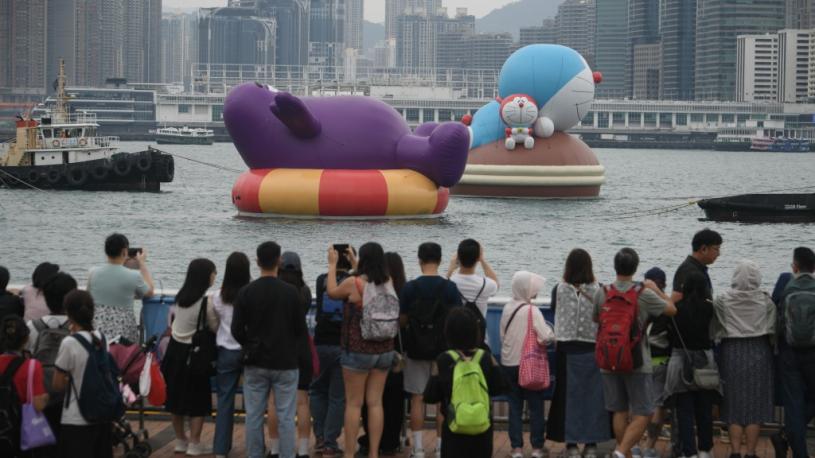 為期8日的維港「海上大巡遊」活動踏入最後一日,4座大型充氣公仔包括多啦A夢、滑嘟嘟、LABUBU及Elmo,下午2時起陸續由添馬公園對出海面出發,途徑東岸公園和星光大道等地標,在維港巡遊兩圈,預計歷時約3小時。