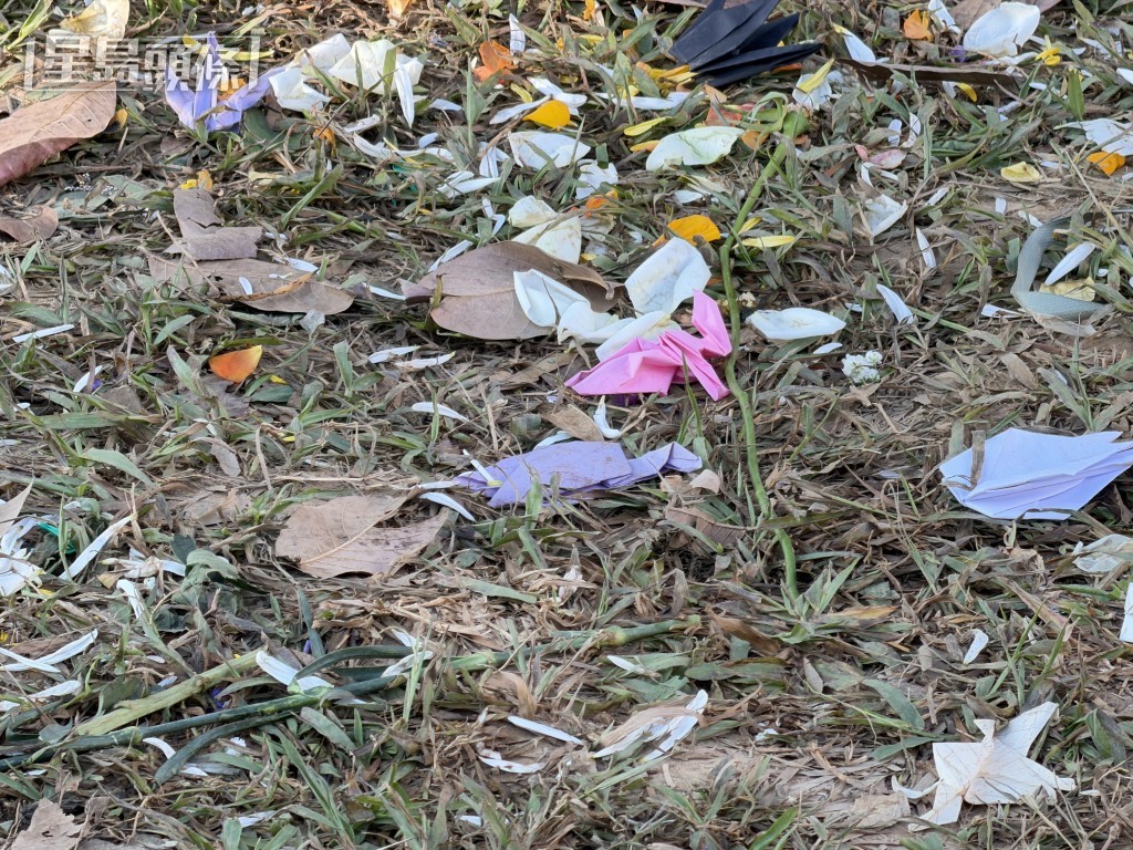 大埔宏福苑11月26日五級大火慘劇,造成過百人死亡。火警至周日(12月7日)已第12日,繼續有市民到廣福休憩處涼亭,獻花及折紙鶴悼念死難者。網上有義工發帖稱,悼念處將於周日深夜11時59分結束。警方回覆查詢時表示,警方與現場人士經商討及協調後,該批人士同意自行離開現場。