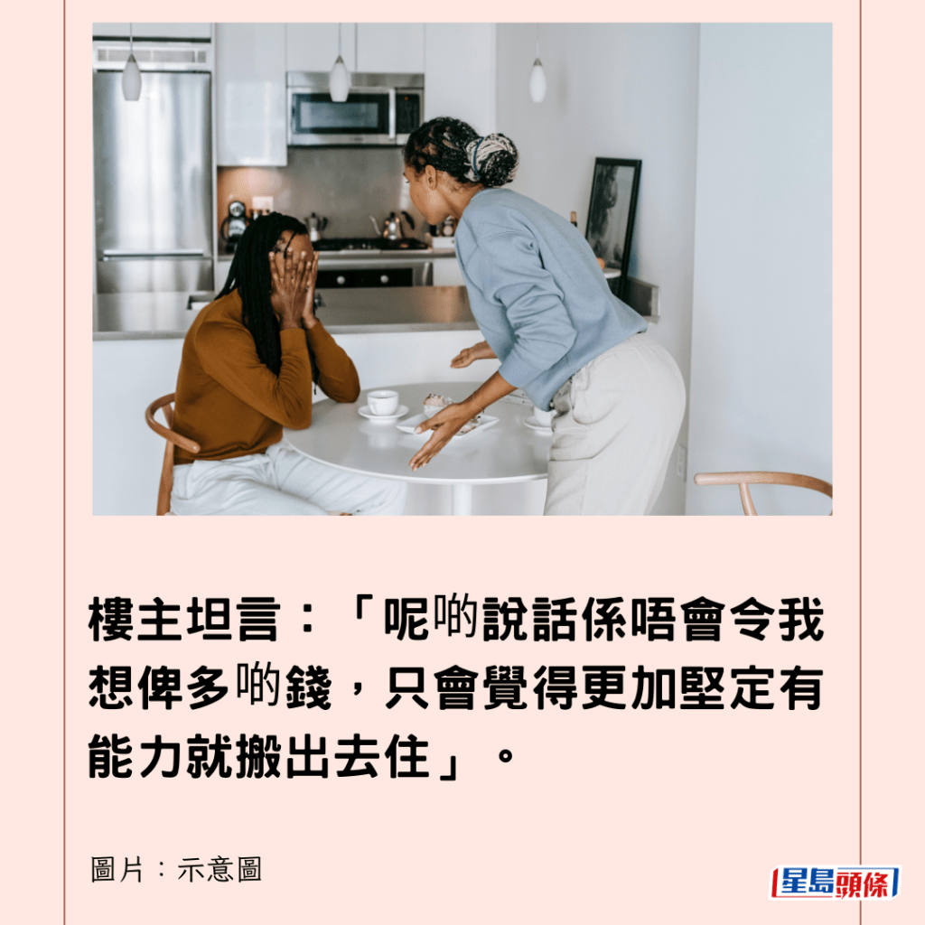 楼主坦言:“呢啲说话系唔会令我想俾多啲钱,只会觉得更加坚定有能力就搬出去住”。