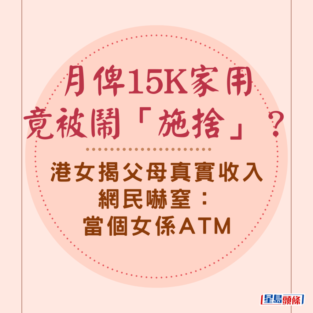 月俾15K家用竟被闹“施舍”?港女揭父母真实收入 网民吓窒:当个女系ATM↓↓↓↓