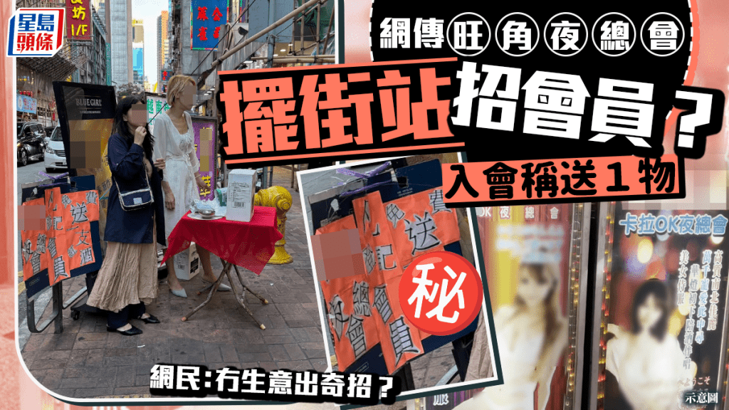 同場加映:網傳旺角夜總會擺街站招會員?入會稱送1物 網民:冇生意出奇招?↓↓↓↓