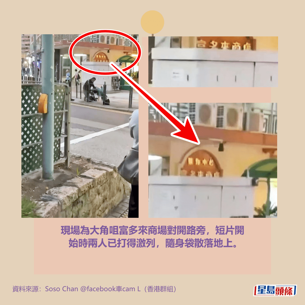 現場為大角咀富多來商場對開路旁,短片開始時兩人已打得激列,隨身袋散落地上。拳來拳往間,靠欄桿的深色上衣男子疑打至鞋飛帽甩。拉扯、角力期間,兩人的動作越見纏綿,更一度十指緊扣像在跳探戈(Tango),場面像極充滿張力的雙人舞。