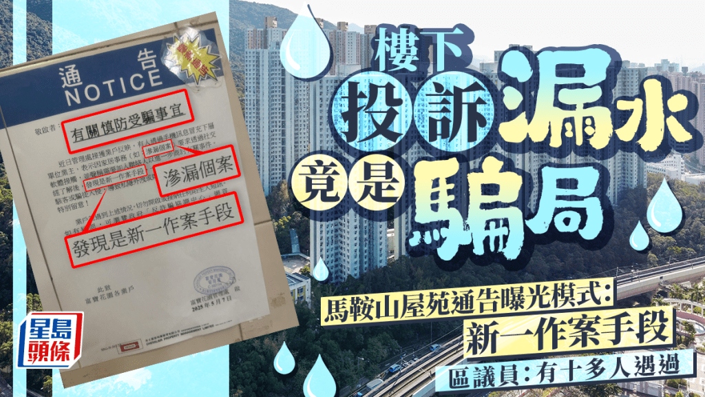 同場加映:樓下投訴漏水竟是騙局 馬鞍山屋苑通告曝光模式:新一作案手段 區議員:有十多人遇過↓↓↓↓