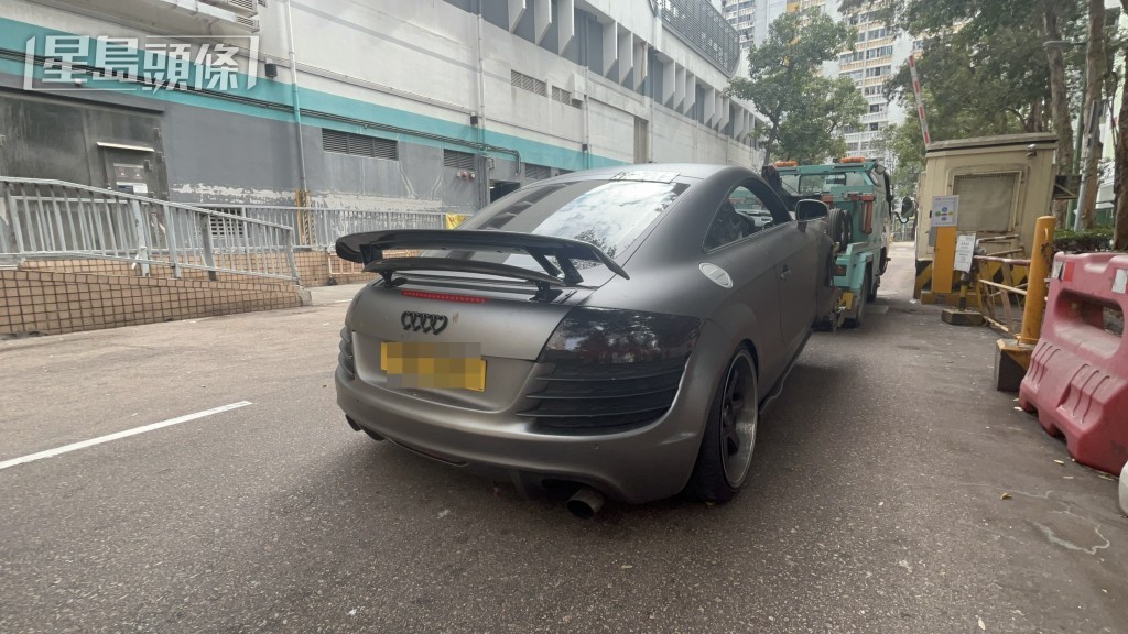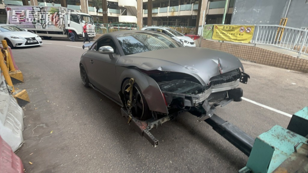 Audi 由拖車拖走。楊偉亨攝