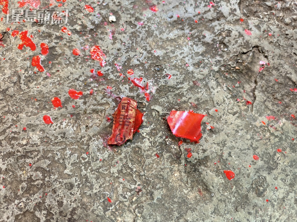 香燭舖遭淋紅油。梁國峰攝