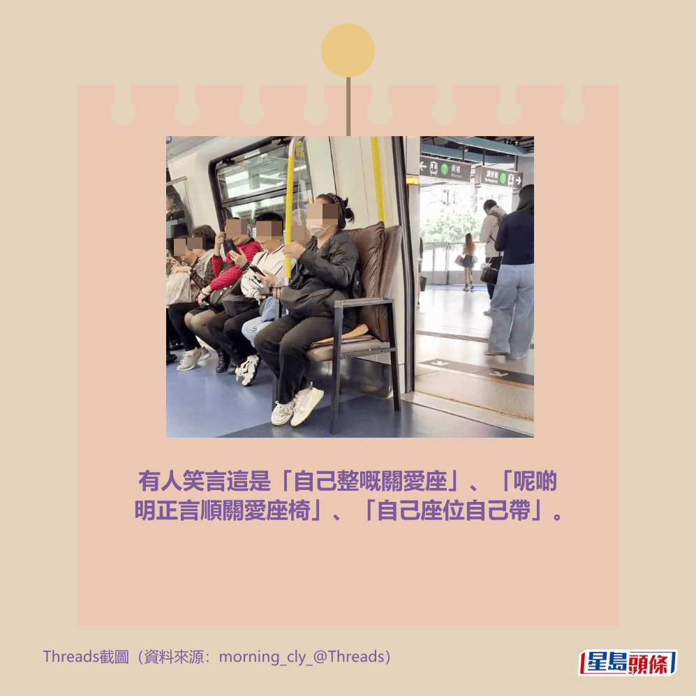 有人笑言這是「自己整嘅關愛座」、「呢啲明正言順關愛座椅」、「自己座位自己帶」。