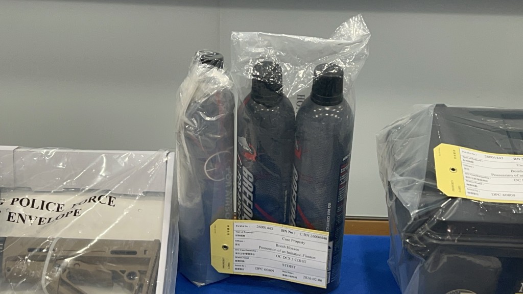 中區警區重案組人員,透過網上情報分析,成功鎖定該疑犯身份,昨晚在沙田區拘捕他,涉「炸彈嚇詐」,在執行搜查令搜查其住宅期間,撿獲共兩支仿製步槍、一支仿製手槍,仿製槍械的零部件,包括彈夾、槍管、槍托、氣罐及塑膠子彈等。警方亦同時檢取war game用的戰術頭盔、背心、腰帶,但未有檢獲製造炸彈的危險品。