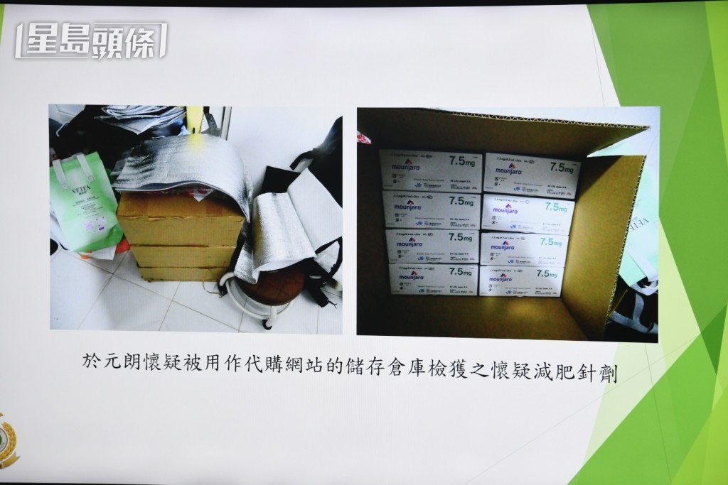 調查顯示,針劑產品在本地市場需求殷切,相比經醫生處方,在外地購買相關針劑成本,可相差高達8倍的價錢,令不法分子鋌而走險。海關更發現有不法分子明目張膽,在網上社交平台非法輸入及銷售受管制藥劑產品。在其中1宗案件,人員經深入調查,鎖定一個在元朗的住宅單位,疑被用作代購網站的儲存倉庫。海關於本月11日拘捕該名網店負責人,並在其住所檢獲逾270支減肥針劑。