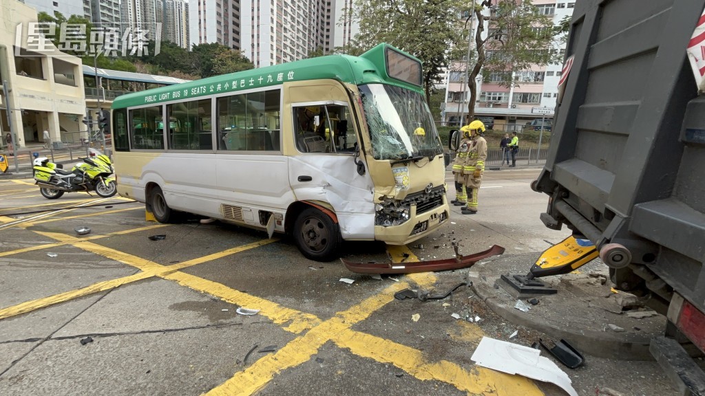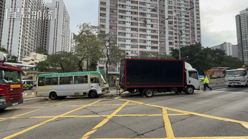 货车与专线小巴相撞。杨伟亨摄