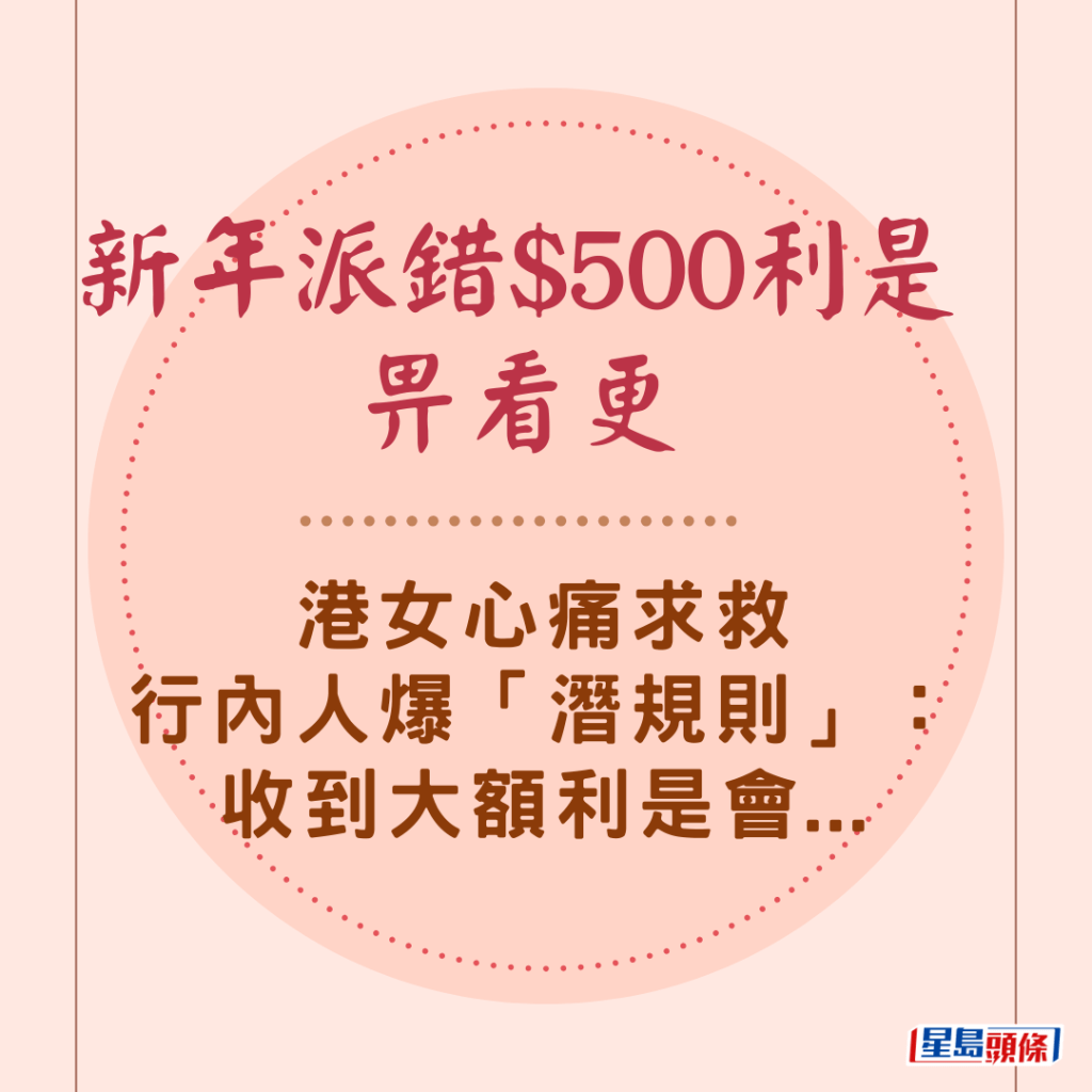新年派錯$500利是畀看更 港女心痛求救 行內人爆「潛規則」:收到大額利是會...↓↓↓↓