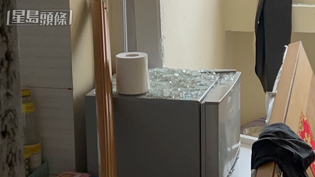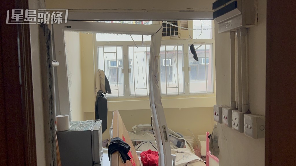 單位損毀嚴重,木門倒下,門框和窗花變形,遍地玻璃碎。