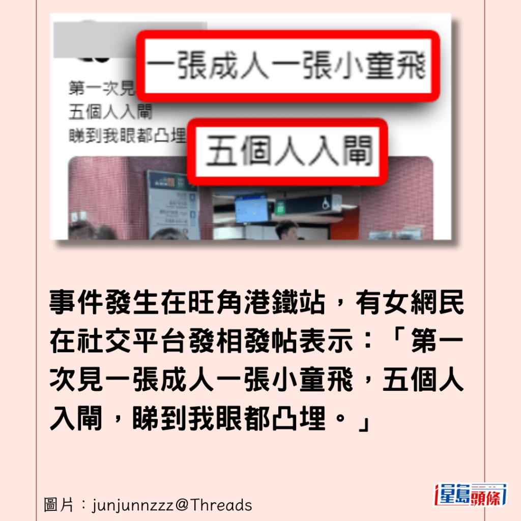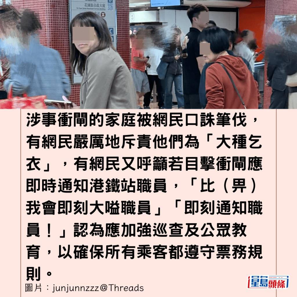 同場加映:港鐵一家五口「人形蜈蚣」衝閘 被拍下母竟回頭怒睥鏡頭 網民:挑戰人體極限↓↓↓↓