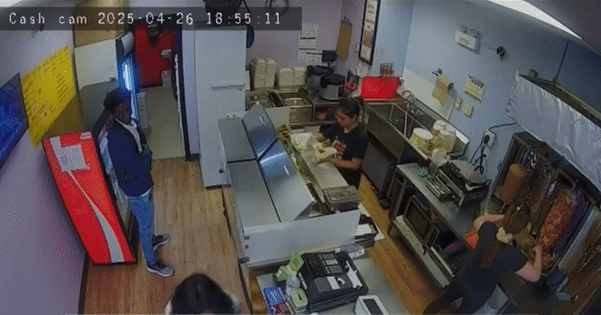 案發現場是大溫哥華的新西敏市第12街(12thStreet)的ParadiseDonair土耳其烤肉店,店方閉路電視拍得,在4月26日晚上接近7點,兩名女店員在如常為顧客準備食物時,發生了這驚心動魄的一幕。