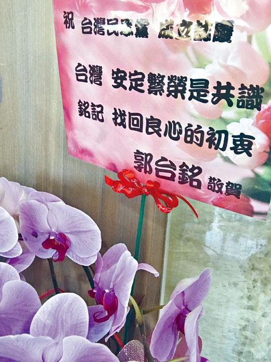 (星島日報報道)民眾黨昨日舉行創黨大會,在國民黨總統初選中落敗的鴻海創辦人郭台銘,以及前立法院長王金平都送上祝賀花籃,更不約而同將自己的名字融入賀詞,令三人之間的合作,增添想像空間。郭台銘幕僚、永齡基金會執行長劉宥彤更親自到賀,備受矚目。柯文哲對此表示,政治上就是要「朋友多、敵人少」,禮尚往來是正常的,不用給它太多意義。