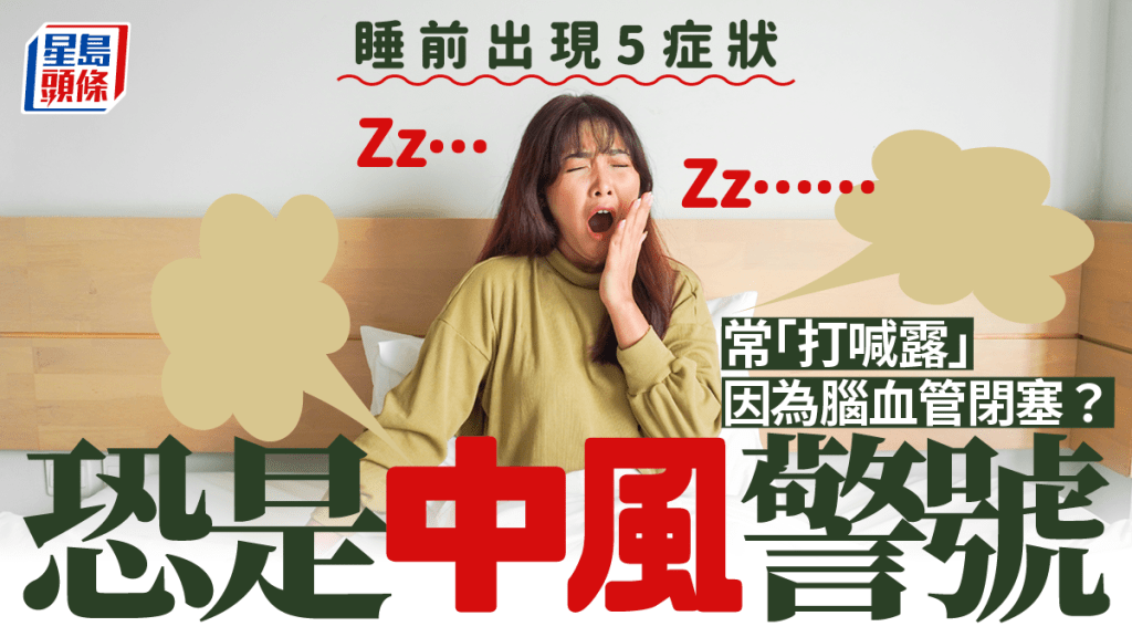 【中風徵兆】「打喊露」不一定只是想睡覺,也有可能是中風的徵兆。有醫生提醒,如發現自己睡前或睡覺時出現頻繁打呵欠等5大徵兆,有可能是患腦梗塞(缺血性腦中風)的警號...