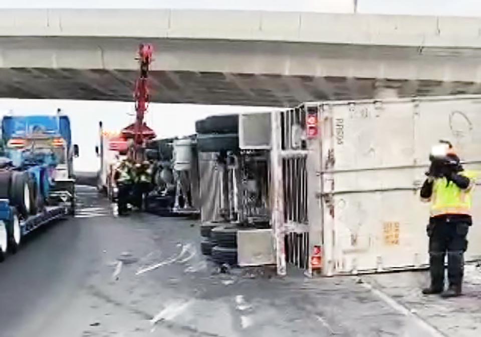 載菜貨櫃車失控翻車 401近400東行線大擠車