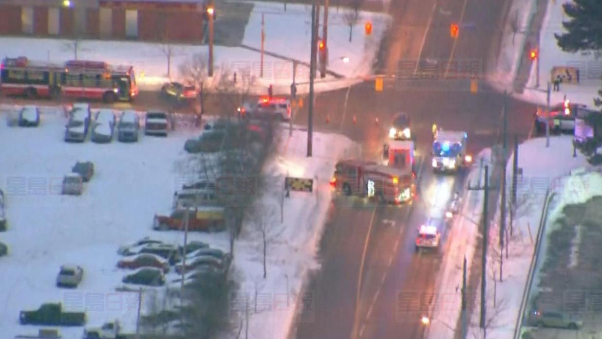 士嘉堡发生交通意外,1名男子于周日(5日)清晨被1辆汽车撞倒,伤势严重。多伦多警队表示,周日早上大约6时,位于士嘉堡Morningside大道与Lawrence大道的十字路口,有1名男子被1辆汽车撞倒,伤势严重,但没有生命危险,救护人员已将伤者送往医院。警方表示,涉事汽车及司机均有留在现场;警员正在现场进行调查,而案发的十字路口现正封闭。(图片:680News)T02