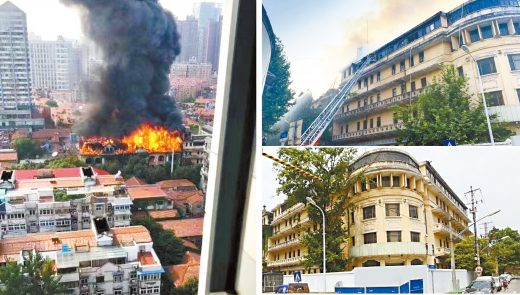 閒置多年的武漢百年老建築江漢飯店開始實施加固工程,14日下午在管線拆除過程中意外起火,現場黑煙滾滾,房頂已燒垮,目前明火被撲滅,無人員傷亡,警方已控制施工方負責人,火災原因正在調查之中。