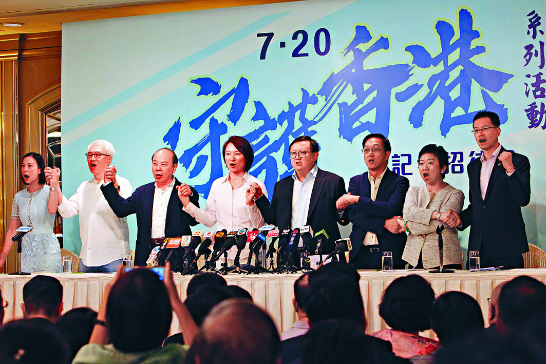 香港反修订《逃犯条例》风波持续,近来多次爆发警民流血冲突。建制阵营20日下午在金钟添马公园发起“守护香港”集会,表明反对暴力冲击、支持警方。建制派人士呼吁所有爱香港的市民出席集会,一同向暴力说不。网上亦流传,有中资机构积极动员员工出席集会。