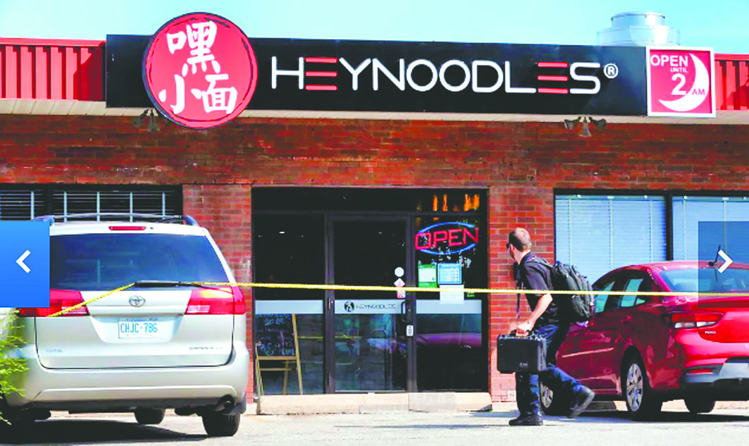 一位麵店經理告訴CP24,經過翻看公司監控​​錄像顯示,兩名受害人駕駛一輛藍色凌志汽車到店前的停車場,泊車後正準備走向麵店,一名騎電單車的槍手在兩人到達麵店之前向他們開火,之後高速逃離現場。