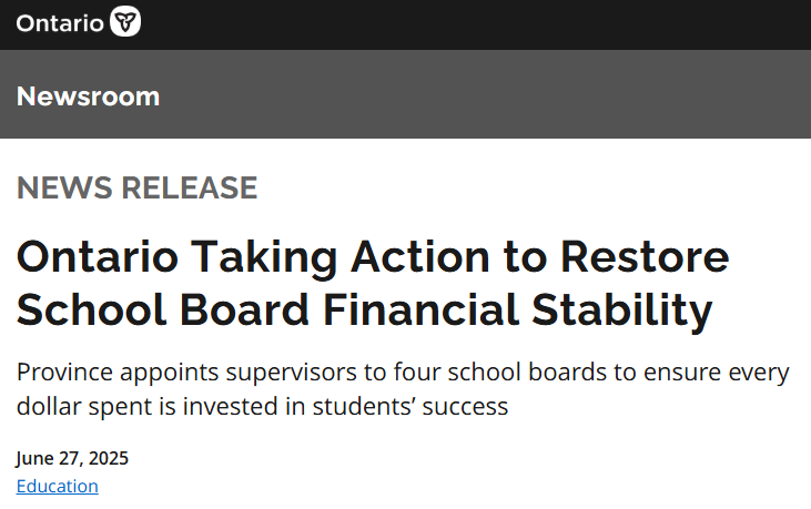 【突發】安省政府委派監督員接管4教育局 「改善」財政管理不善問題