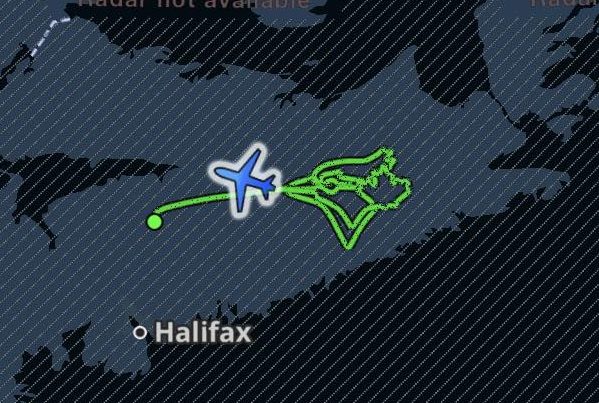 有27年駕駛經驗、63歲的DimitriNeonakis於當地時間早上11點半從哈利法斯國際機場起飛,駕駛自己的CirrusSR22小型飛機,沿預先設計好的航線,在新斯高沙省上空畫出經典的藍鳥標誌。