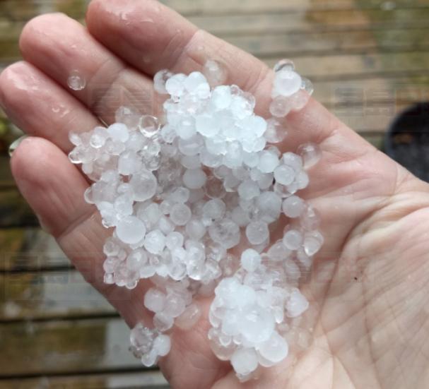 南安省下午降冰雹吹90公里强风 万锦市民忙捡冰粒拍照