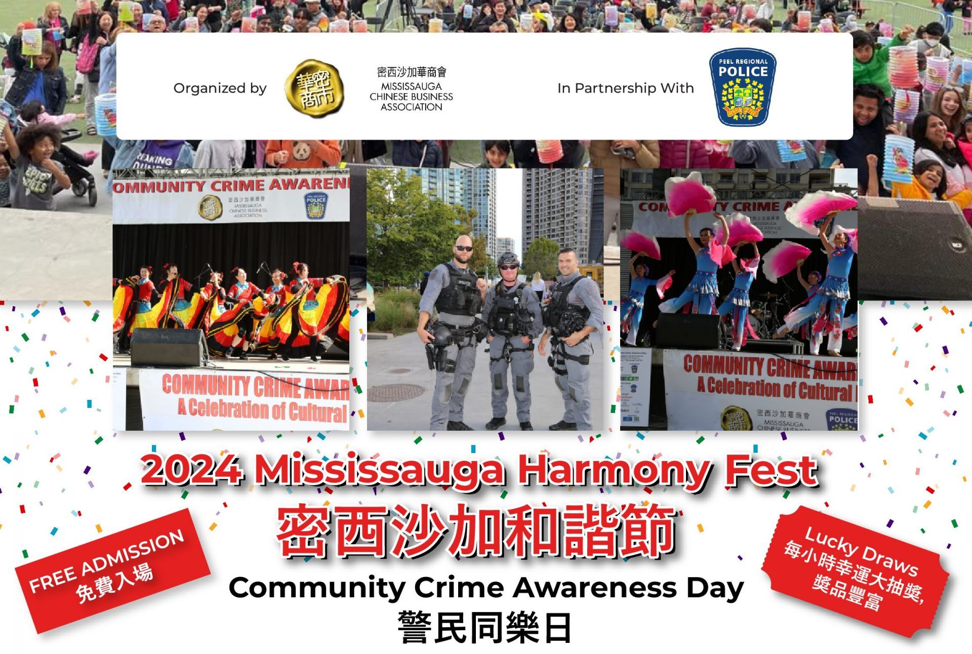 【社区消息】密西沙加华商会(MCBA)主办的第二十三届警民同乐日暨第一届密西沙加和谐节,将于2024年9月14日至15日(星期六和星期日)在密西沙加中国城(MississaugaChineseCentre-888DundasStE,Mississauga,ONL4Y4G6)盛大举行。