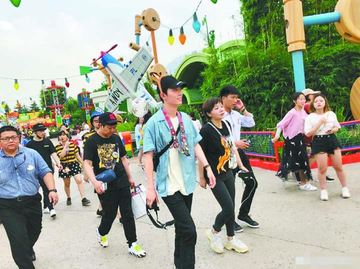 肖战带卡通头箍游迪士尼