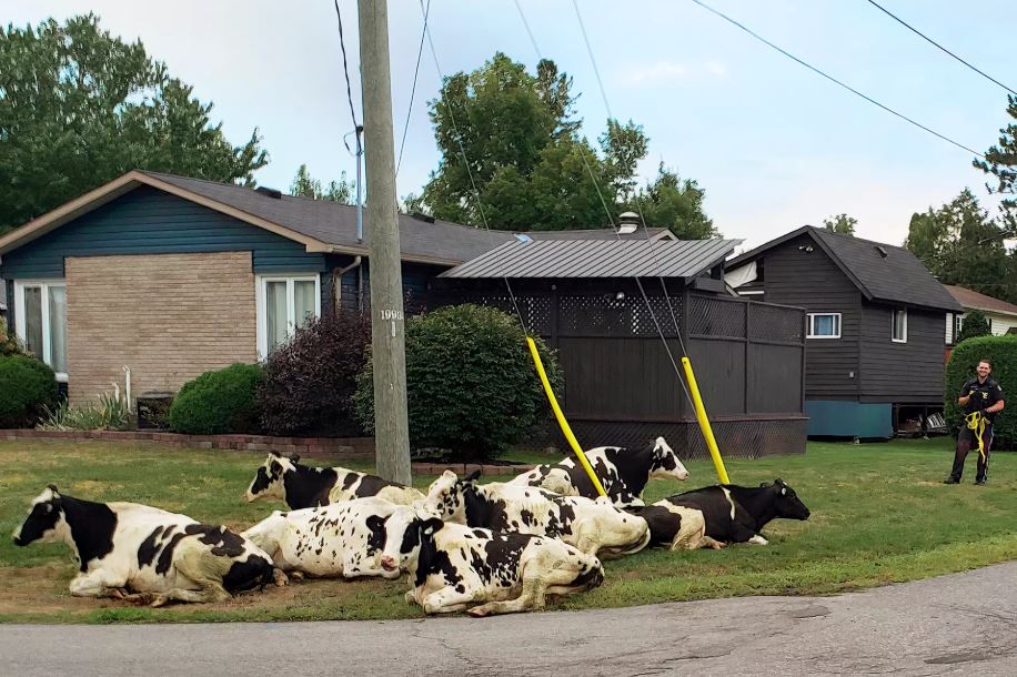【星岛综合报道】安省省警于周三(19日)早上发出特别交通警告,表示有一群乳牛逃出农场,在安省罗塞尔(Russell)社区内“游荡”,且霸占民居的前院,对附近交通构成影响。