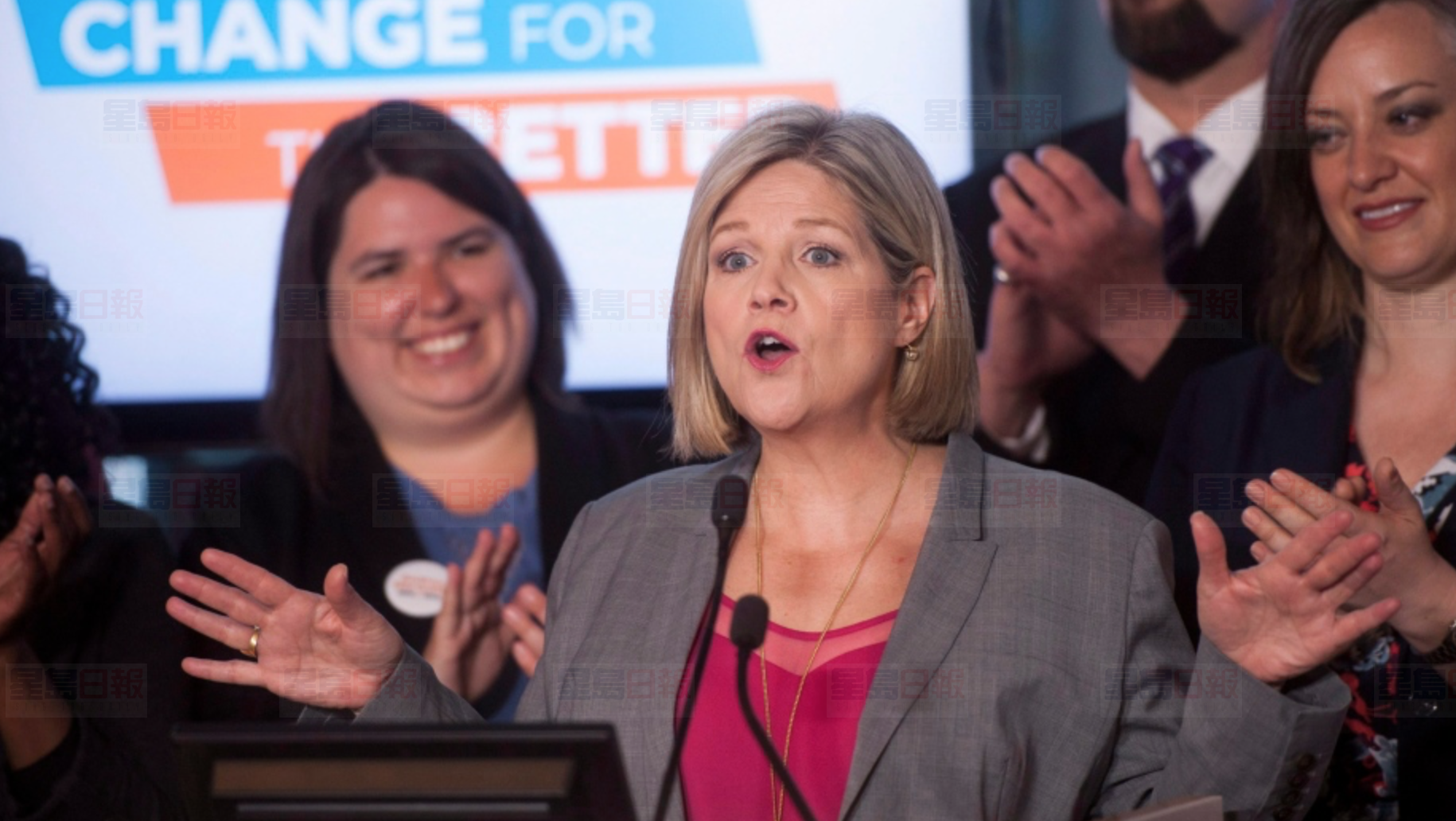 安省新民主党党领AndreaHorwath,图片来源:加通社据CP24新闻报道,省选最新民调,保守党继续占绝对领先地位,安省则降至第三位,被新民主党(NDP)...