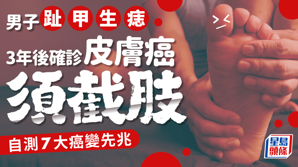 身上的黑痣可能是癌變徵兆?中國內地福建一名52歲男子腳趾甲長黑點,以為只是瘀血,惟3年後黑點變大,求醫檢查後確診皮膚癌。黑痣變成皮膚癌之前,較常出現7大癌變先兆...