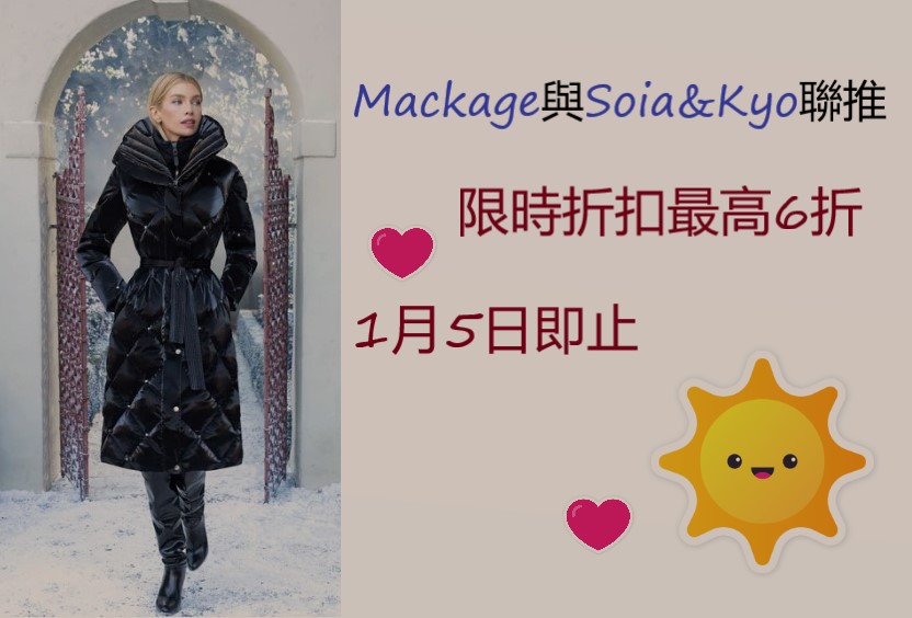 ❄加拿大的漫長冬季才剛剛開始,想要入手高質感外套與經典單品,現在還來得及,何不把握Mackage與SOIA&KYO的歲末打折銷售時機?