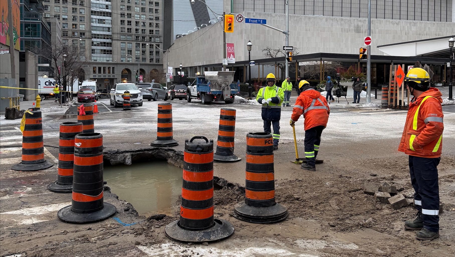 【星島綜合報道】多倫多市中心周四(1日)發生水管爆裂事故,導致FrontStreetEast近ScottStreet一帶多條主要行車線持續封閉,對市區交通造成影響。