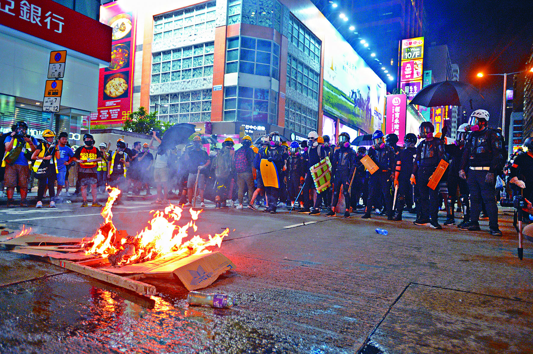 示威者襲警署佔馬路 油尖旺游擊戰火頭四起