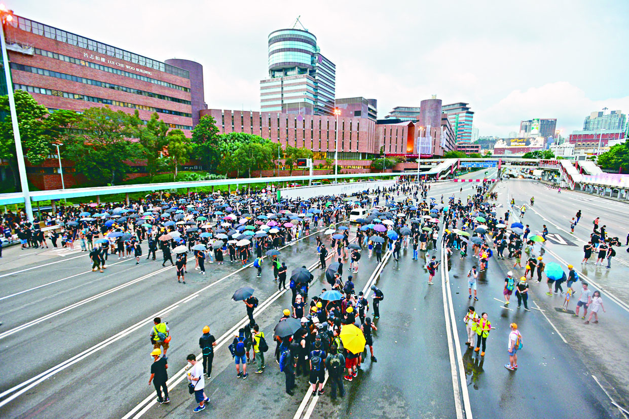 (星島日報報道)示威者行動愈演愈烈,數千人昨偏離旺角原定遊行路線後,其中有示威者昨晚在四句鐘內,兩度堵塞紅磡海底隧道來回線,其間令港九交通來回服務陷於停頓,不少巴士須折回管道離開,有候車女巿民不滿示威者滋擾發生爭執,更遭人推跌及襲擊,示威者兩次擾攘僅半小時及十分鐘「快閃」散去;另有示威者在尖沙嘴碼頭拆下國旗及丟入海中,做出嚴重侮辱國家尊嚴的行為,再次挑戰中央及特區政府的底線。