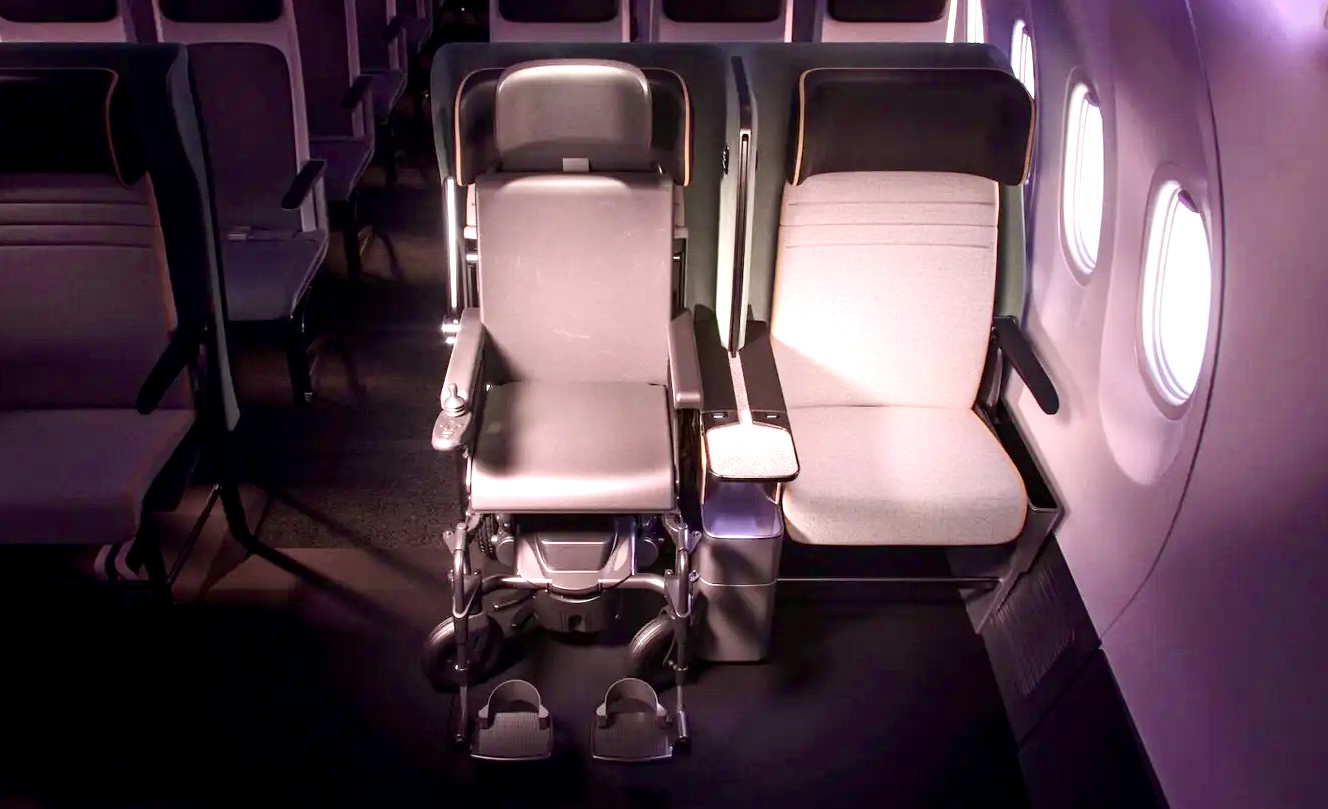 科技生活| 行动不便飞机乘客福音 折叠座位供轮椅“停泊”