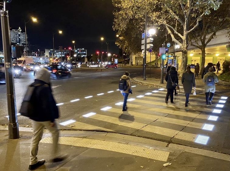 [星岛综合报道]巴黎15区外环道之前加装创新的“动态地面照明信号”实验装置,随交通信号与日光调整光照强度,非常显眼。近日公布的实验调查结果正面,行人大多觉得穿越马路更安全,汽车也更礼让行人。