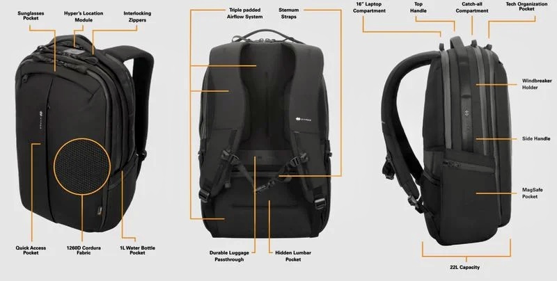 科技生活| HyperPack背包带iPhone Find My寻找功能