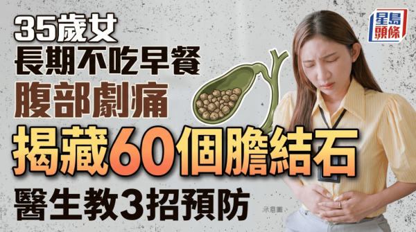 35岁女长期不吃早餐腹部剧痛 求医揭藏60个胆结石 医生教3招预防
