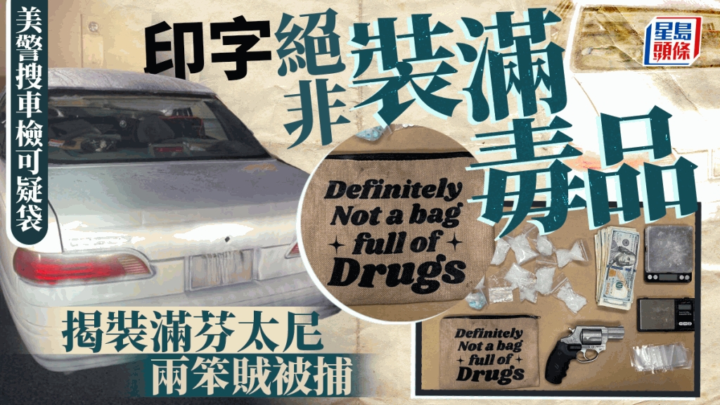 美警检获“绝不是毒品”袋子 装满芬太尼拘两笨贼