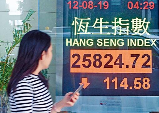 香港局势兼贸战拖累 股市黯淡多指跌百点