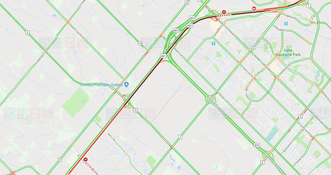 封锁路段Map截图据CP24报道,密市多辆货车发生致命撞击,401高速的WinstonChurchillBlvd路段已被封锁,驾车可从JamesSnow的...