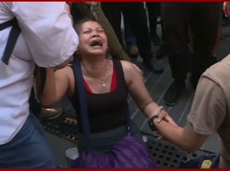 下午3時許,數名家長在尖東橋外聚集,並向在場警員表示,希望可入內與其子女見面。其中,一名母親情緒激動,並跪地痛哭。她又指,「如果我個女死咗,跳樓俾你地睇」,其他家長隨即上前安慰。